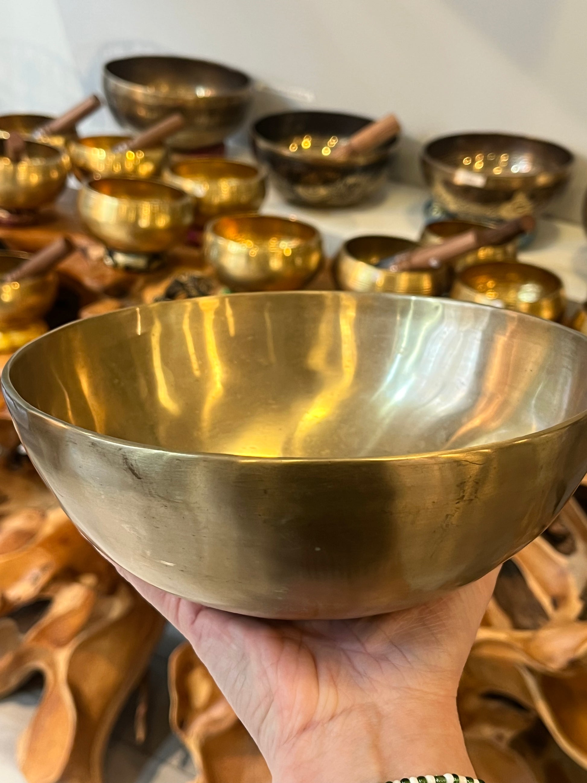 Fabriqués à la main au Népal, nos bols respectent la tradition des “7 métaux sacrés” — or, argent, mercure, cuivre, fer, étain et plomb — et offrent des vibrations profondes et harmonieuses, idéales pour la méditation, la détente et l’harmonisation énergétique.